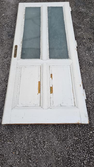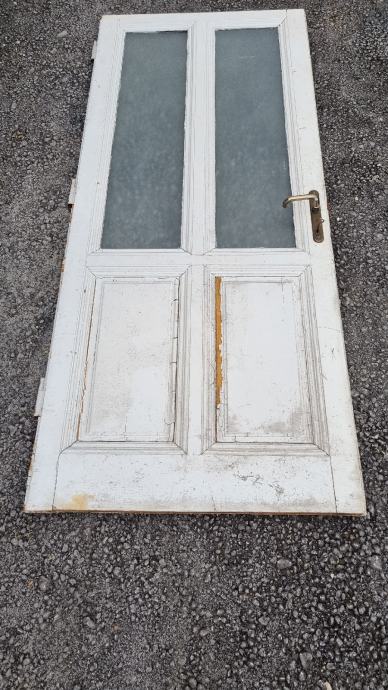 Starinska drvena vrata sa staklima 222x95x4 cm.