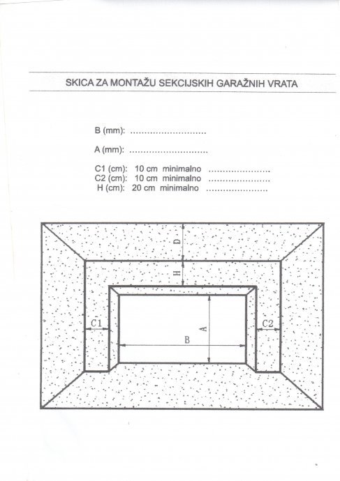 (SVIJETLI OTVOR ZA UGRADNJU ROLO VRATA MORA BITI MINIMALNO 60 MM (6 CM) MANJI OD DOLJE NAVEDENIH DIMENZIJA)