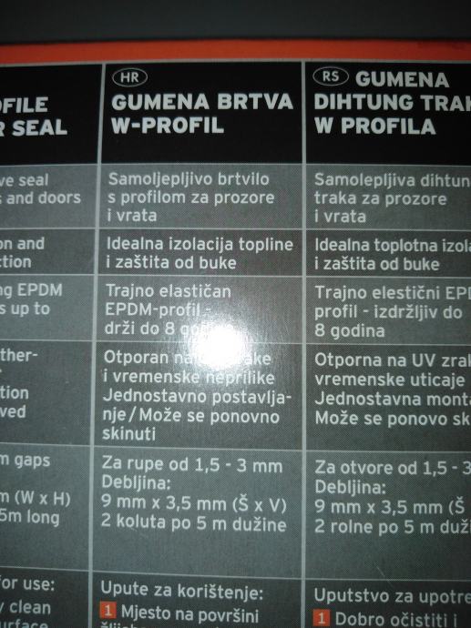 Na prodaju gumena samoljepiva brtva W profila koja se stavlja na vrata i prozore da vam ne puše.