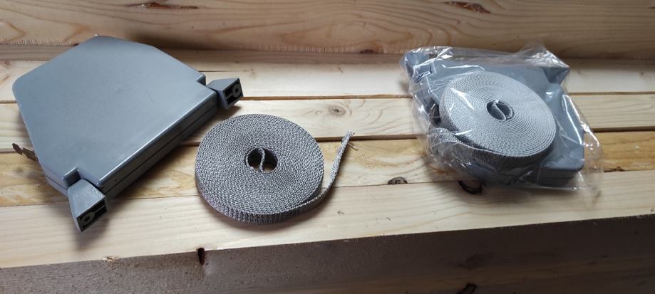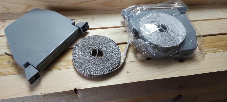 Prodam automacke kutije sa nsmotajima gurtnama,boje na slikama,sa ugrađenim zaustavljačima za prozorske rolete za podizanje (kutija,automat,opruga, plus gurtna u kompletu) kom.za 16 e. za prozore ili sa DUŽIM namotajima u kutiji za balkonska vrata za 19,50 e..(one imaju veču dužinu namotaja u kutiji )A bolje su i izdržljivije.Pašu na sve vrste prozora,ili vrata pvc,ili drvene ,na sve špule i osovine, imaju svu pripremu izbušene rupe u mjestima za kopčanje.Srebrne (ili sive,) i boja čokolade koštaju 2 e.plus.Boja se odnosi na kutije vanjske,a ne na boju gurtni,one su SVE srebrno bijele.