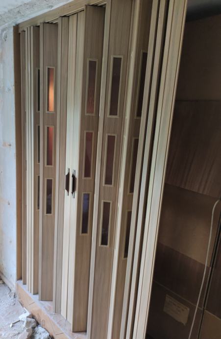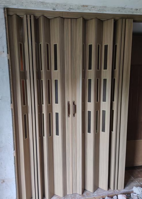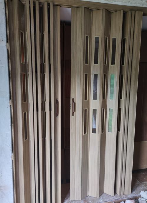 Prodajem Harmonika vrata sa prozorčićima za svjetlost, vidljivo na slici, sve komplet sa vodilicama, vrlo malo korišteno.