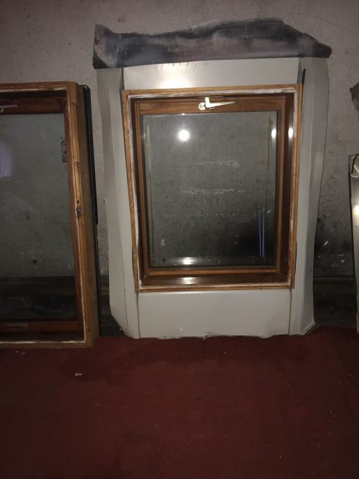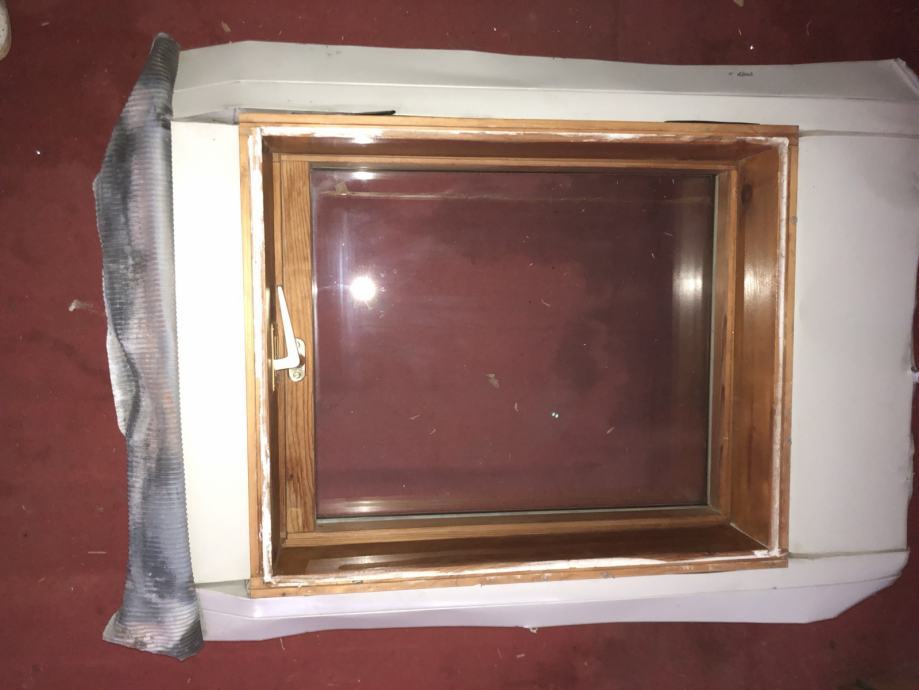 Radi se o drvenom prozoru s dvostrukim ovjesm (gornji i središnji), ručka s donje strane, bezbojan lak, dimenzije 63x75, uz njega dolazi i opšavni lim,