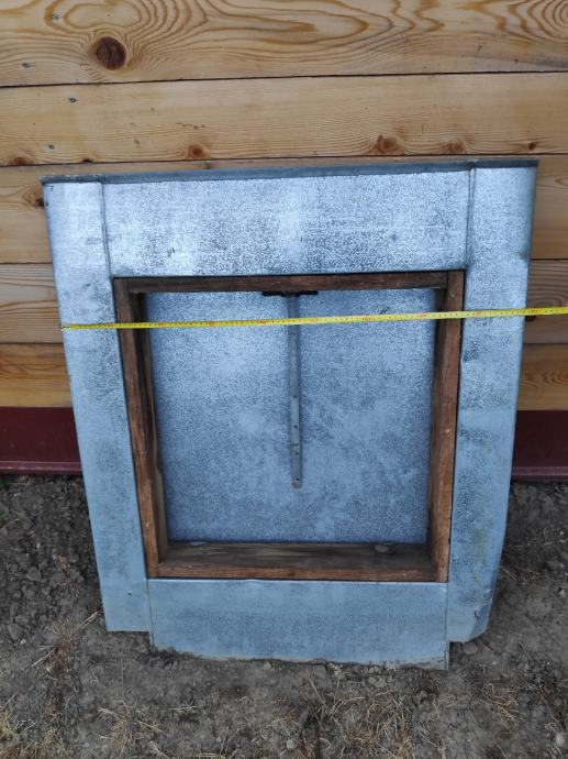 Vanjski rub 89 x 89 cm. Unutarnji okvir sa poklopcem je 68 x 68 cm. Lim je zdrav i traži minimalno