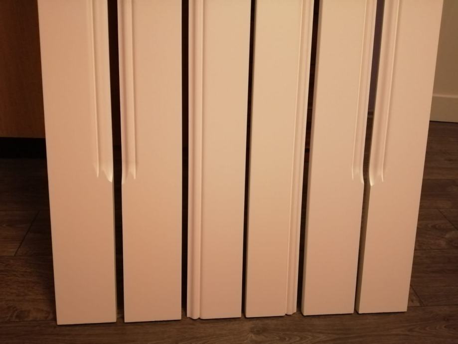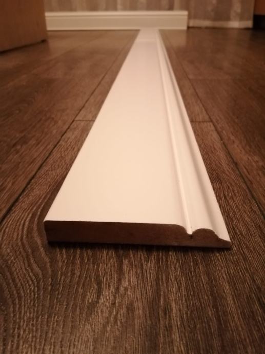 Lajsne za omeđivanje okvira prozora ili okvira vrata, mdf, dužine 280 cm, širine 12cm, i debljine 18 mm, lakirano bijelo polumat. Dva kompleta.