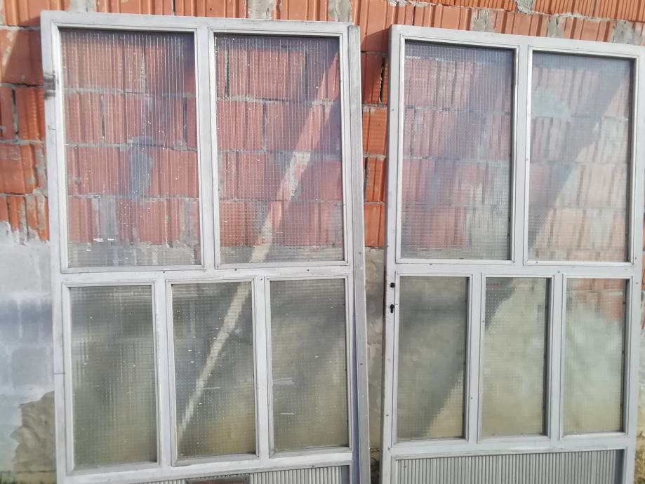 malo korištena i očuvana metalna, dvodijelna, ustakljena vrata bez štoka;