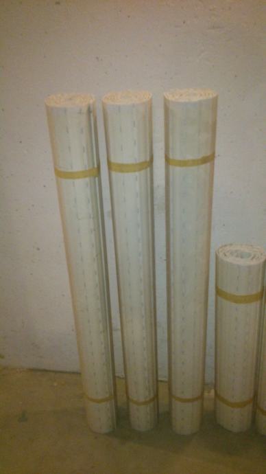 Mini rolete bijele boje: š= 78 cm, L= 165 cm, za prozor visine 140 cm. Cijena 25 € po komadu. Komada 4. Rolete su skinute zbog ugradnje alu-roleta.