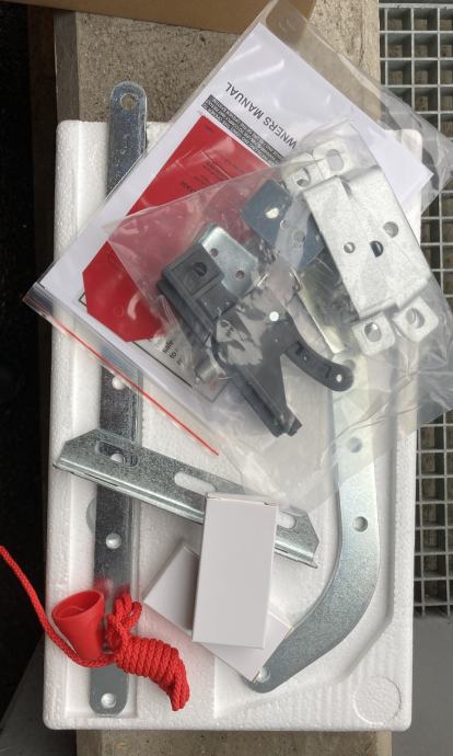 * Dodatna popratna oprema za montažu: čelični perforirani rupičasti L profil duljine 2,9 m (30€), dodatni prijemnik (za 46 ili 66€) za usklađivanje na drugu automatiku i bravica sa sajlom (za panel 30€ i za lim 40€) za ručno otvaranje garažnih vrata kada u garaži motor nema struje!