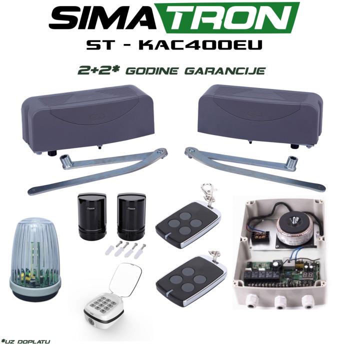 Jedan set Simatron ST-KAC400EU automatike za krilna dvorišna vrata sadrži: