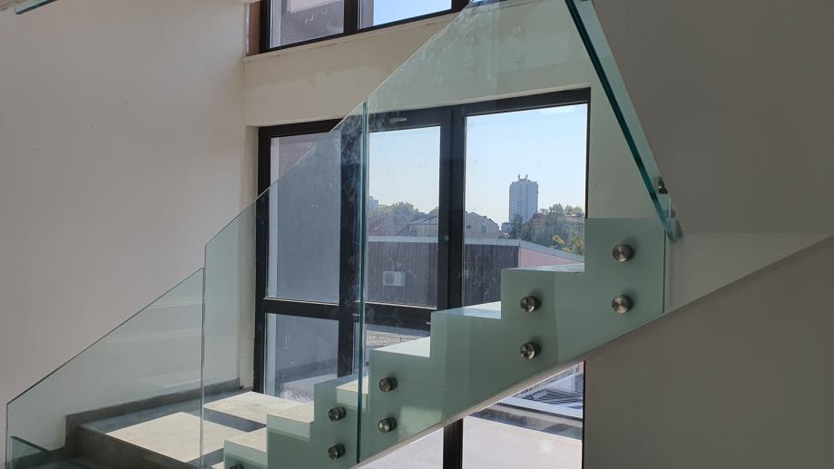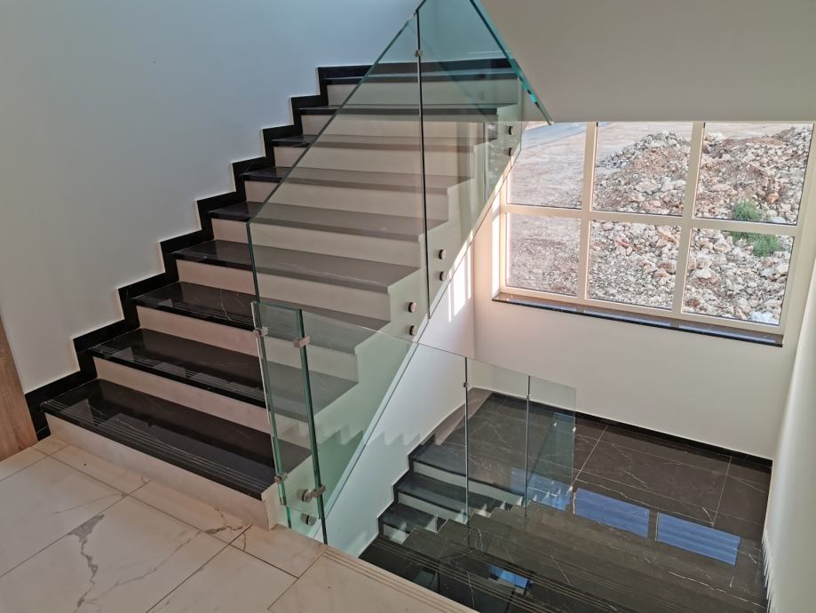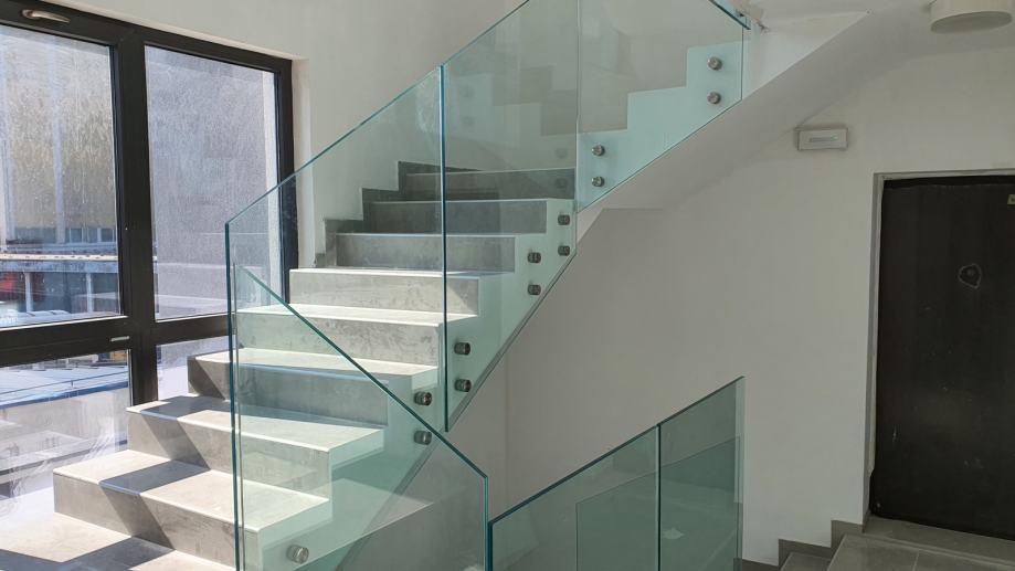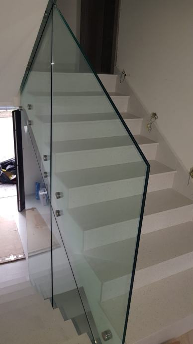 IZRADA STAKLENE OGRADE SA INOX NOSAČIMA I STAKLOM LAMISTAL KALJENO 8+8MM PROZIRNO