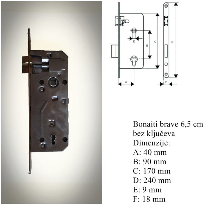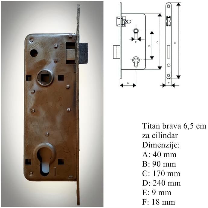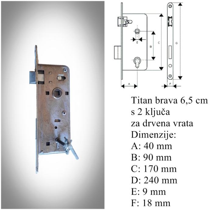 Titan brava 6,5 cm s 2 ključa za drvena vrata, 1 kom - 6 € (nekorišteno)