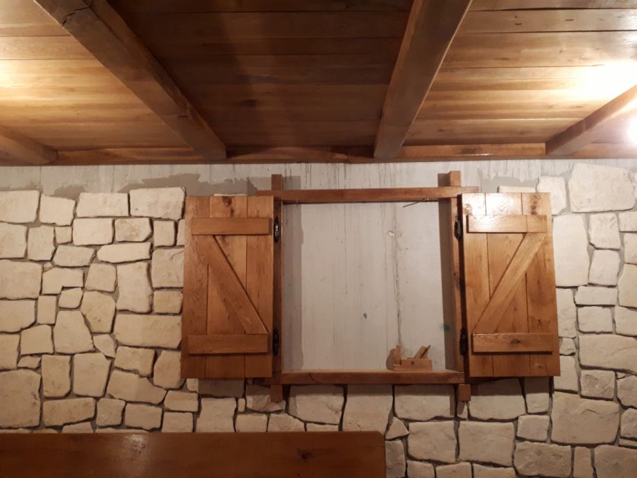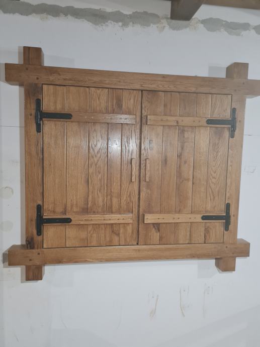 Prozor od hrastovih greda sa masivnim hrastovim griljama, kovani okov.