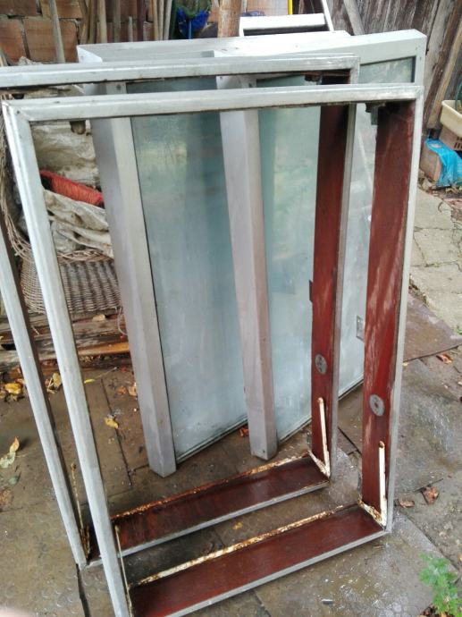 Prozor metalni..alu. dim. 114x76.. Dupla stakla. Staklo nije prozirno.Plus ugradbeni okviri. Mozda se moze otvoriti na kipu