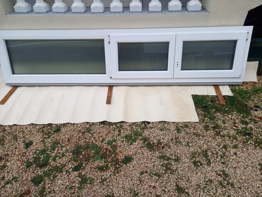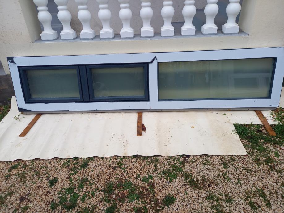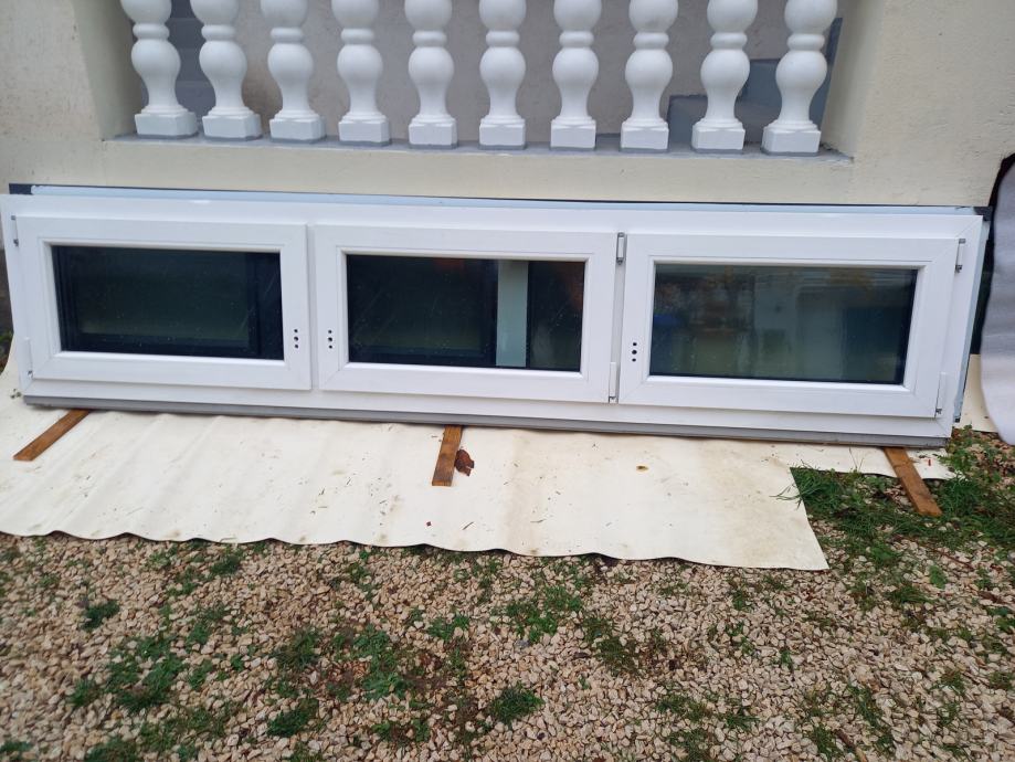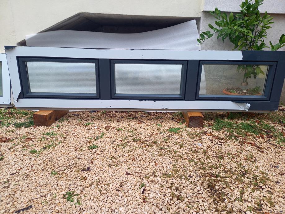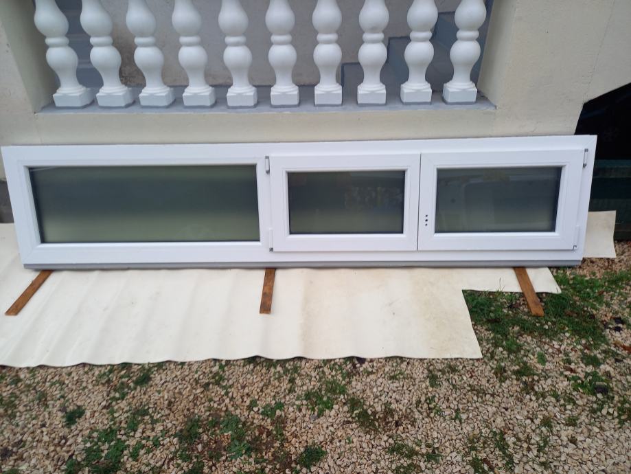 Prozori su ,1) sirine 268 cm x60 cm visine- sa mlijecnim staklom za kupatilo 200€