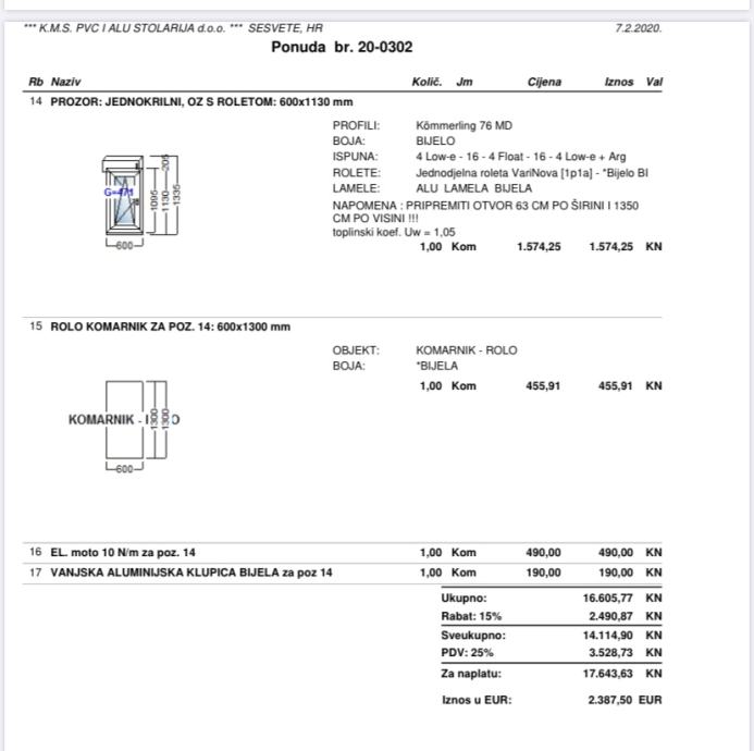PVC prozor, rolo komarnik, el podizac alu rolete, trostruka izo stakla.