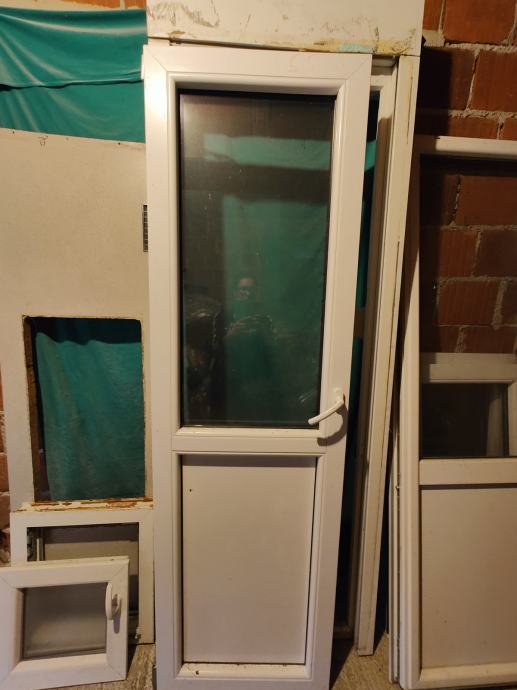 1)balkonska vrata(59cmx200cm sa plastikom; samo staklo43cmx96cm)+okvir i vodilica za rolo(78cmx227cm)- roletu treba popraviti tj.feder(nije neki kvar ali roleta ne ide dole)...200eura