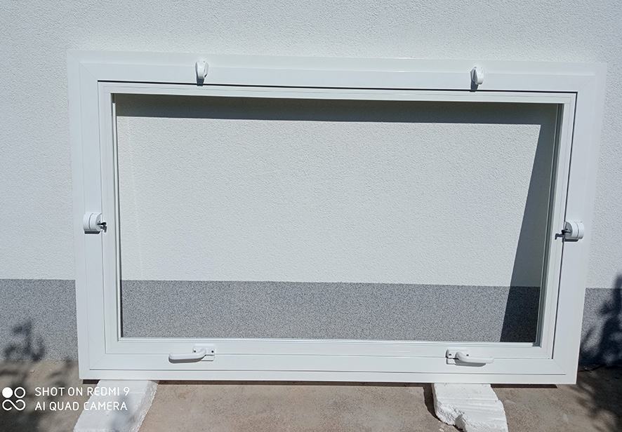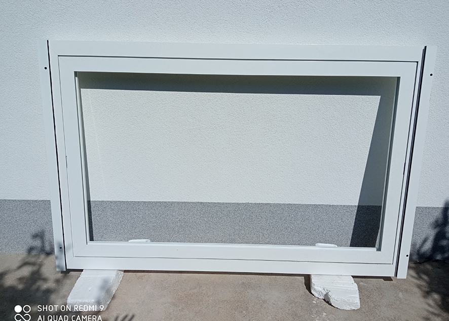 Prodajem novi rotirajući prozor izveden iz aluminijskog profila sistema New-Tec 65TT - profil s prekinutim termičkim mostom, plastificirani u boji RAL 9010 - bijela. Ostakljenje temopan staklo 4+12+4 mm.