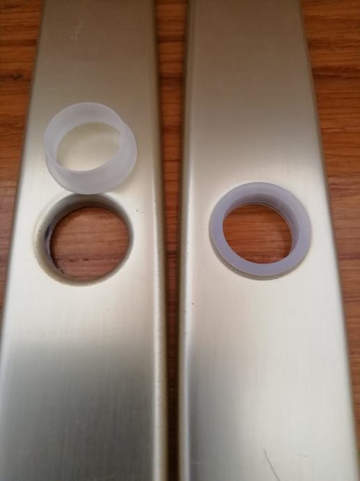 Ukupna dużina rozete = 235 mm, razmak rupa (kvaka-cilindar) = 90 mm, promjer rupe za kvaku = 20 mm., širina 30 mm.