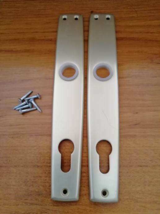 Prodajem 5 pari novih, ukrasnih rozeta od eloksiranog aluminija (zlatnožute boje) za cilindar brave sobnih vrata u kompletu sa pripadajučim vijcima i plastičnim prstenovima.