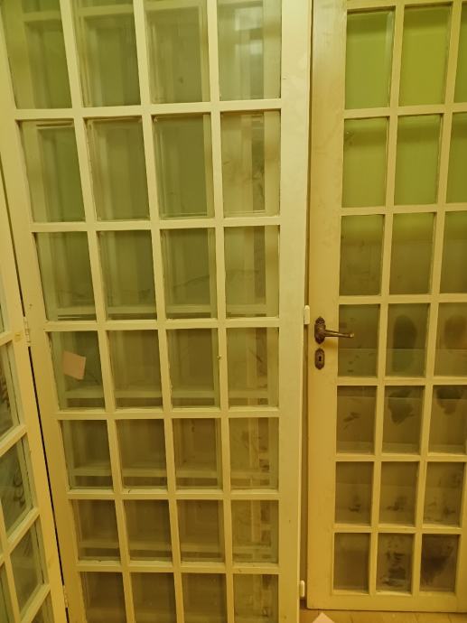 Vrata ulazna, sobna i višekrilna sa brušenim staklima.