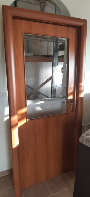 Prodajem sobna vrata sa staklom. Boja trešnja. Materijal MDF, vrlo kvalitetna i teška. Dovratnik,lajsne,brava i kvake uključene. Dimenzije otvora: 198x81cm. Lajsne pokrivaju 8cm.
