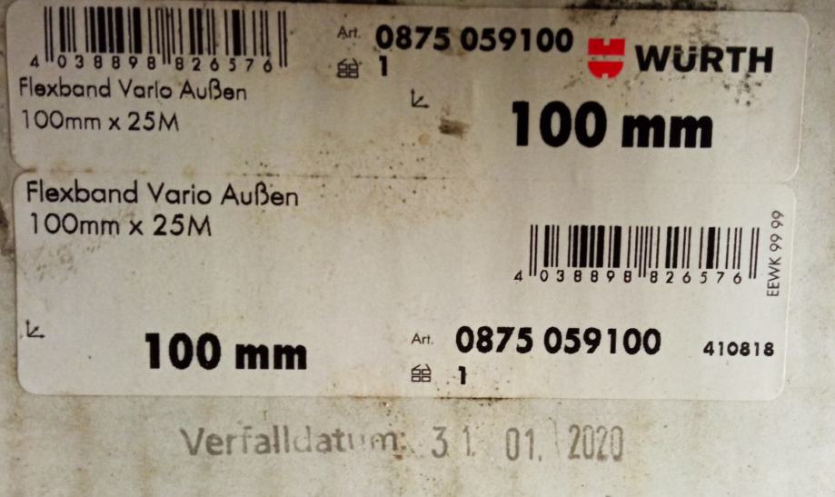 Flexband vario wurth vanjska traka za RAL montažu kod ugradnje stolarije, 100mm širine, samoljepiva, 1 kom cijeli od 25m i 1 kom od 20m.
