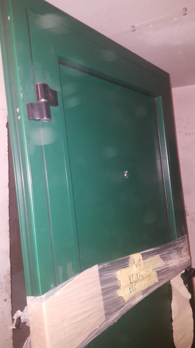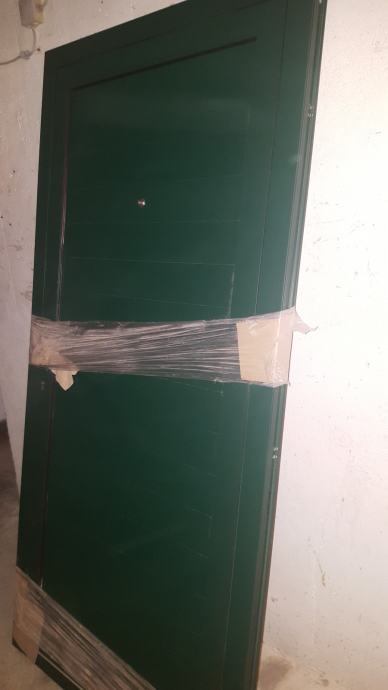Jednokrilna vrata s dovratnikom FEAL TERMO 65,britvele lijevo gledano iznutra, BOJA i boja ispune zelena RAL 6005, ispuna: letva FT 0142, ŠIRINA: 1000 mm, VISINA: 2100 mm, cilindar brava s ključevima, kvaka crna, špijunka, NIKAD MONTIRANA, bez ikakvih oštećenja, prodajem ispod cijene.