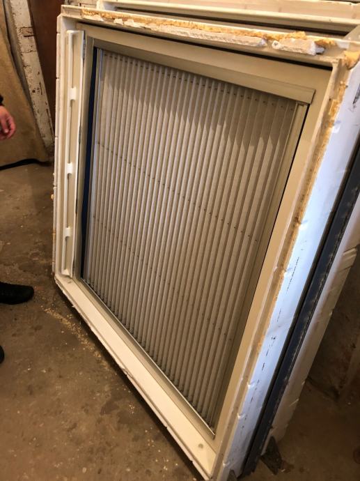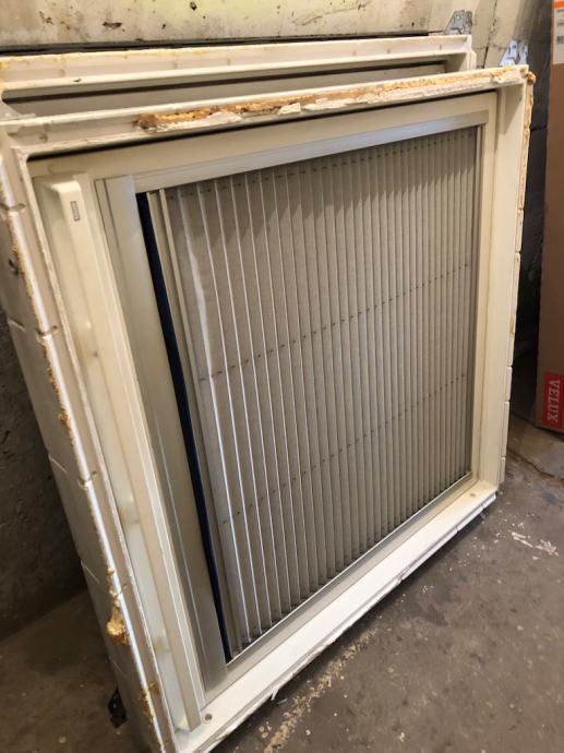 U ponudi je Velux krovni prozor od poliuretana dimenzije 114 x 118 cm sa pridapdajućim Velux dvostrukim rolo sjenilom. Sjenilo je manjkavo i ne funkcionira savršeno stoga se daje na pokolon uz prozor. Sjenilo inače ima tamnoplavu tkaninu za zamračenje i svjetlu plisiranu za zasjenjenje. Prozor nema opšava. Dostupna su dva komada, a iskazana cijena je za jedan komplet = prozor plus sjenilo koje je na poklon.