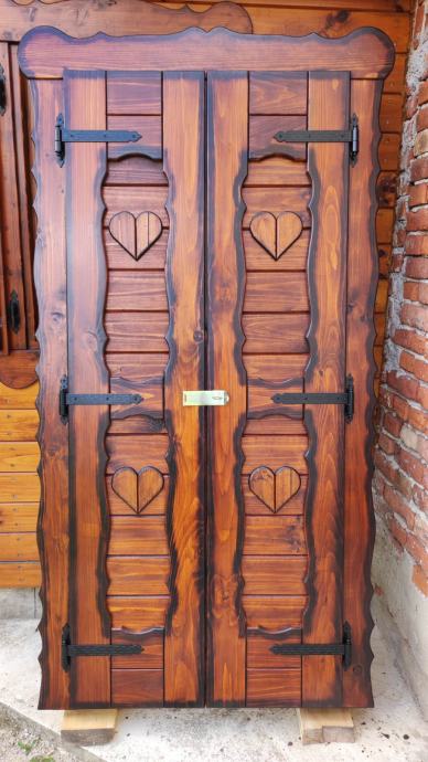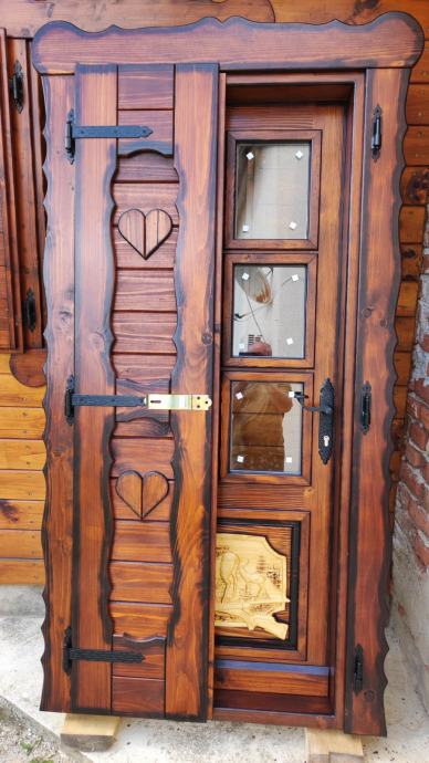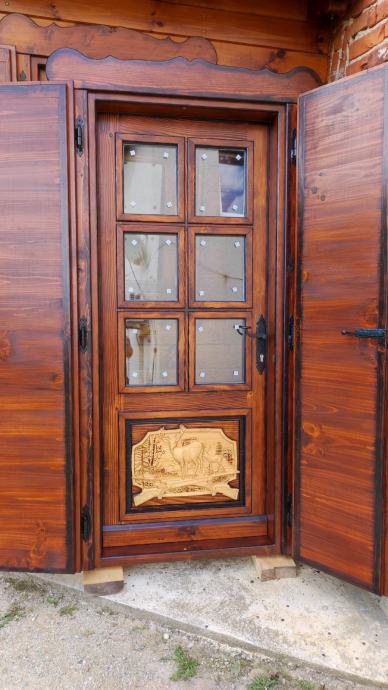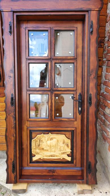Drvena ukrasna vrata sa vanjskim škurama. Dim. 90*200. Izo staklo. Cijena je fiksna. Pogledajte i ostale moje oglase.