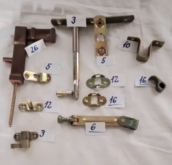 - nove okove za žaluzine i kvake za prozore,(broj komada prikazan