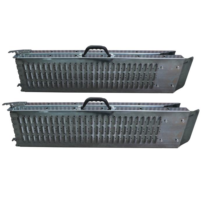 Nabavite savršeno rješenje za utovar ili istovar vozila kao što su vaš ATV, traktor za travnjak, motocikl i mnogo jednostavnije i sigurnije s ovim praktičnim setom od dvije sklopive metalne utovarne rampe. Ova utovarna pristaništa izuzetno su svestrana i pružaju prikladan način prijevoza vašeg vozila.