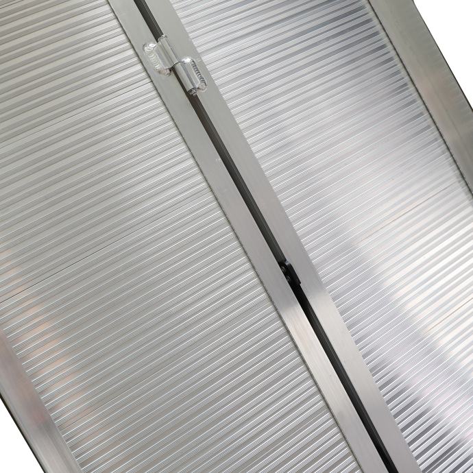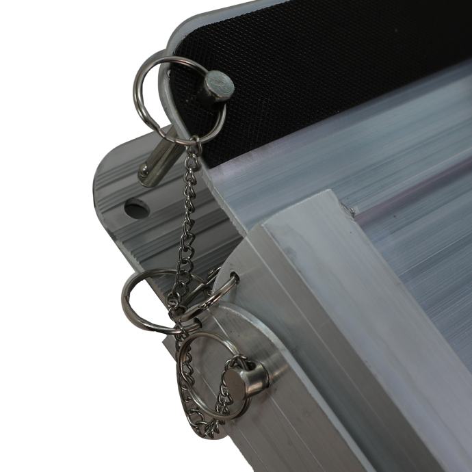 Izrađena od izdržljivog aluminija, rampa je lagana, ali izuzetno čvrsta. Materijal je otporan na vremenske uvjete i otporan na koroziju, što osigurava dugovječnost ove rampe.