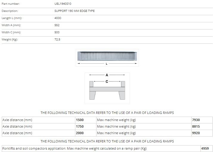 Aluminijske rampe za utovar strojeva do 10 tona 4000x500mm sa rubom 72 kg komad za utovar strojeva na kamion 1200mm visine