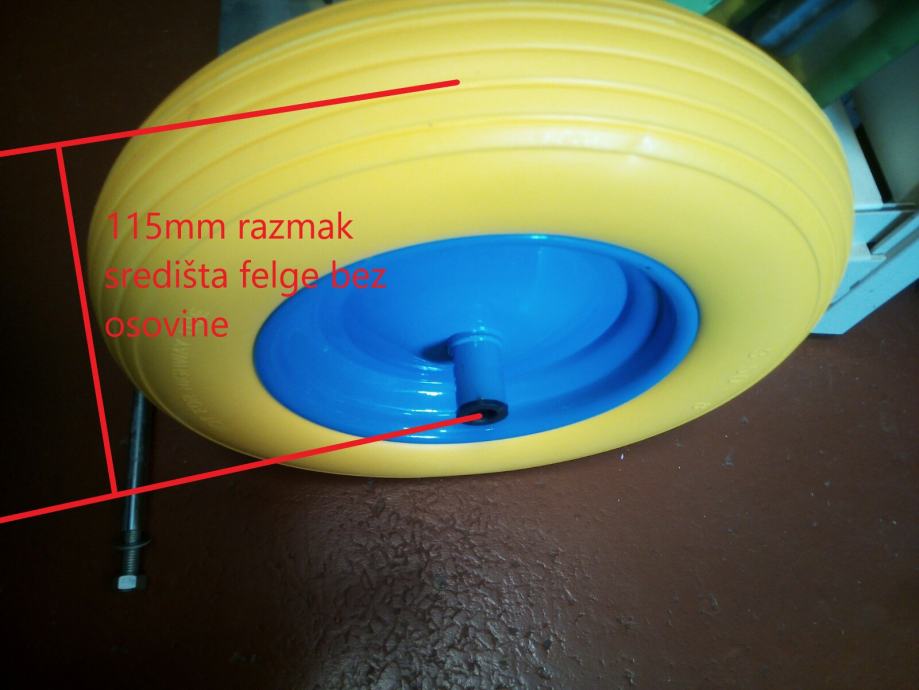 Kotač za građevinska kolica napravljen od PUNE GUME.