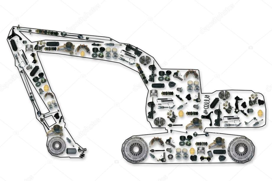 - Dijelovi hidraulike (glavna pumpa hidraulike, hidromotori okretanja, servo motori, distributori, pogonski reduktori ...)