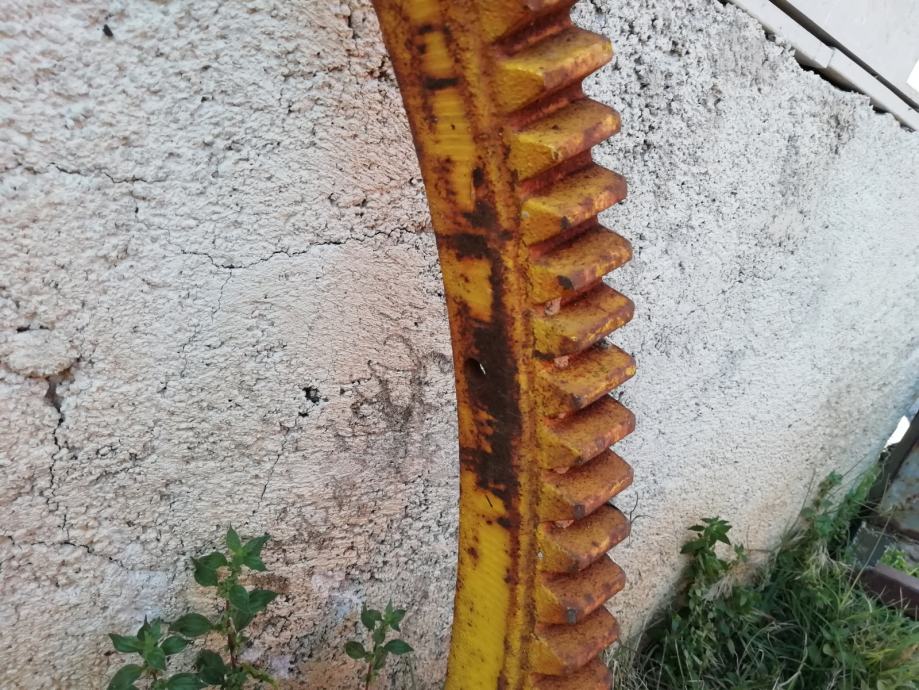 Neupotrebljavan zupčasti vijenac kupole bagera, u promjeru 800 mm, modul zuba ne znam ali je razmak na vrhu zuba 20 mm. Bez ležajeva, samo vijenac.