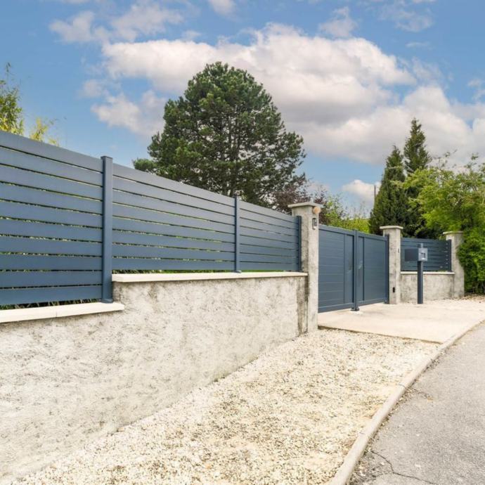 Aluminijske ograde modernog dizajna s horizontalnim profilima. Ograde su izrađene od kvalitetnog aluminija, otporne na koroziju i vremenske uvjete.