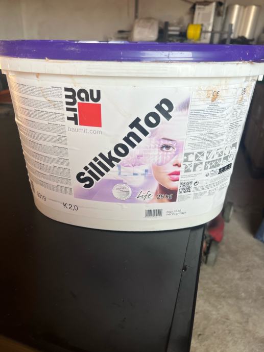 Prodajem završni sloj fasade baumit silikon top 2mm boja 0364.Ostalo od fasade 4 kante za 40 kvadrata.