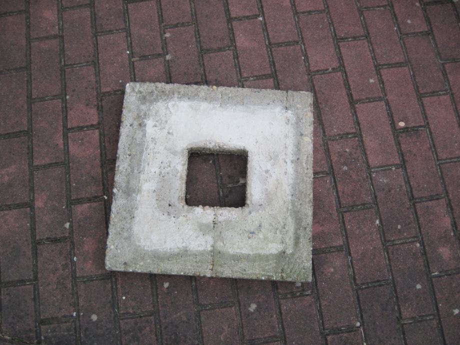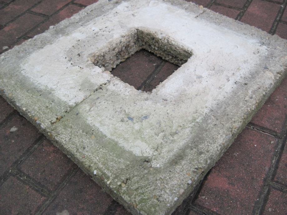 Dimenzije: cca 50cm x 50cm, unutarnji otvor cca 15cm x 15cm, debljine cca 6cm.
