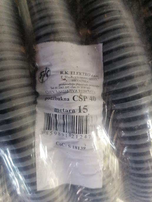Cijevi za kablove podžbukna CSP 40. Dva koluta po 15 metara u jednom. Cijena za kolut 8 eura.