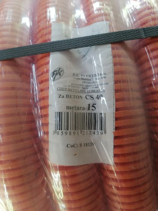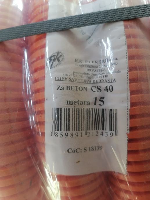 Cijevi za kablove u beton CS 40. Dva koluta po 15 metara u jednom. Cijena za kolut 10 eura.
