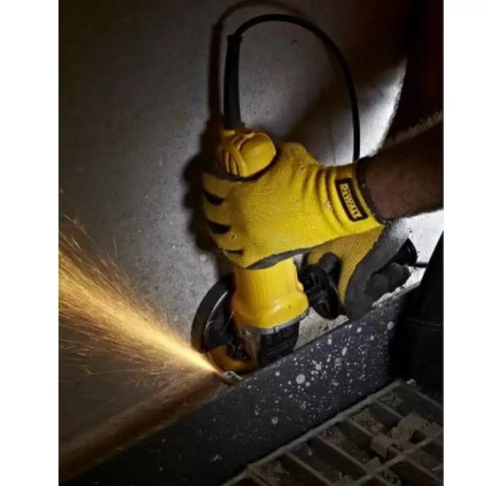 kutna brusilica ima blokadu vretena za maksimalnu dubinu rezanja. Bočna ručka je podesiva u nekoliko položaja. Kutna brusilica DeWalt DWE4050 je priručna brusilica s novim protiv abrazije zaštićenim oblikom motora za bolju izdržljivost motora, novi oblik motora također povećava i vijek trajanja četkica. Kompaktni oblik alata prikladan je za pristup i u skučenije radne prostore i maleni opseg omogućuje udoban položaj za držanje. Olovni kalem za veću izdržljivost motora i kugličasti ležajevi za veću učinkovitost i trajnost.