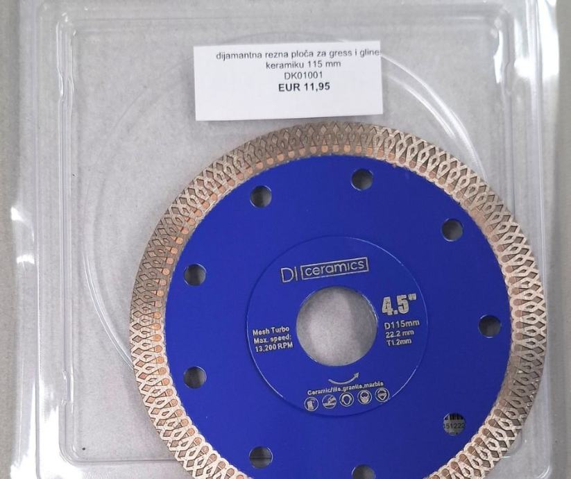 Dijamantna rezna ploča plava za gress i glinenu keramiku 115 mm.