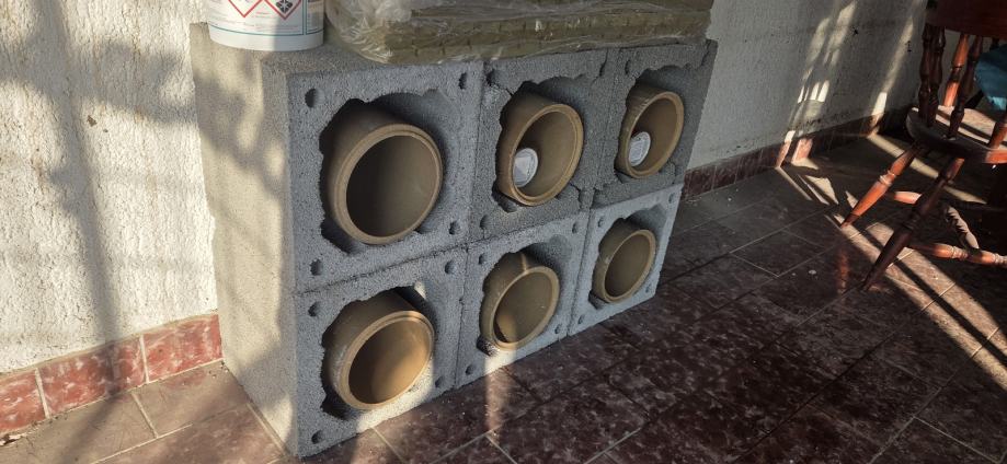U kompletu 6 betonskih elementa za dimnjak, 6 pripadnih keramičkih cijevi fi 160 sa izolacijom ukupne duljine 2m.