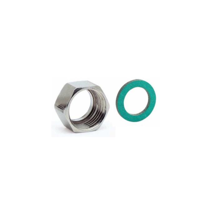 Niklane mesingirane matice sa ženskim navojem ISO 228 G sa sintetičkim vlaknima na bazi KLINGERSIL C4324 ravne brtve za pitku vodu i otporne na stalne radne temperature do 250 °C (tekućine) i 200 °C (pare).