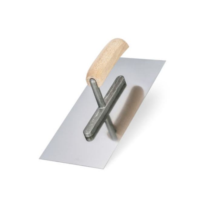 Gleter od nehrđajućeg čelika s gumenom/drvenom dvokomponentnom drškom za udobniji rad.
