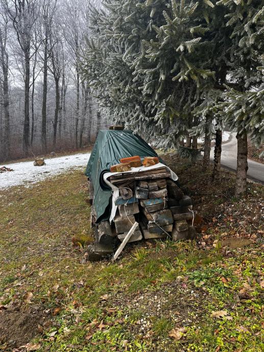 Na prikladnom mjestu za odvoz šumarskim kamionom sa dizalicom.