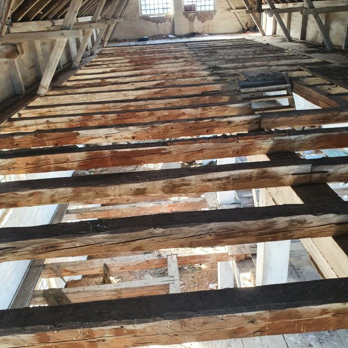 Jelova konstrucija , rogovi 20 cm x20 cmx 7 m, grede 30cm x 30 cm x 5 m.