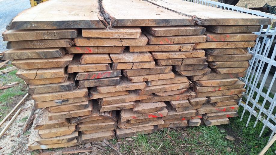 Vidljivo na slici. Dužina građe je 3m -4m. Cijena 800 eur/m3. Sušeno na zraku 3 godine.