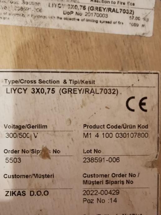 Prodajem kabel 3x0.75 liycy(oklopljeni) 225metara u tromblu. novo! Cijena 150 eur za svij 225m