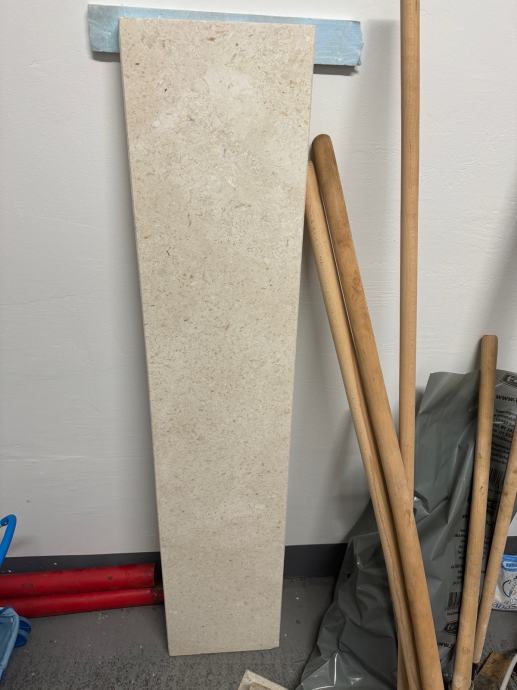 Kamena poklopnica klupica, dužina 140 cm, širina 29 cm, debljina 3 cm. Obradene duze dvi strane i okapnice na duze svi strane.